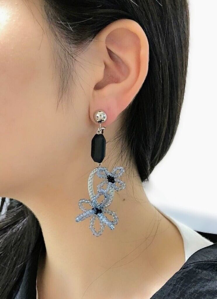 イヤリングの場合はアレルギーフリーのネジバネ式金具にて作成いたします。