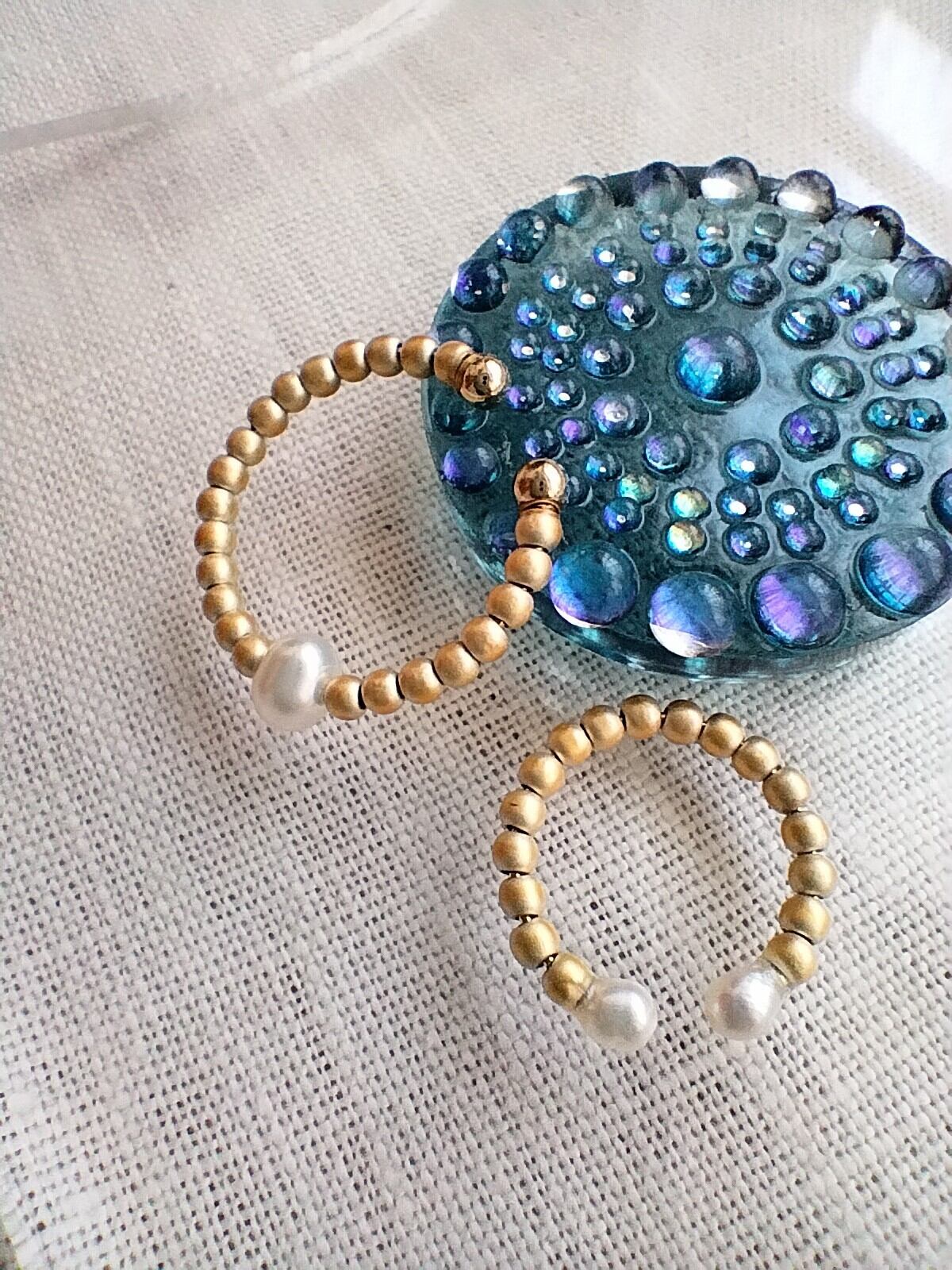 マットな質感のビーズと淡水パールを合わせたサイズ違いのイヤーカフです。